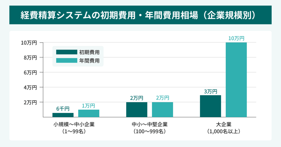 経費精算システムでは一般的にユーザー数や申請件数に対して課金されるため、企業規模が大きいほど費用相場も上がる傾向にあります。