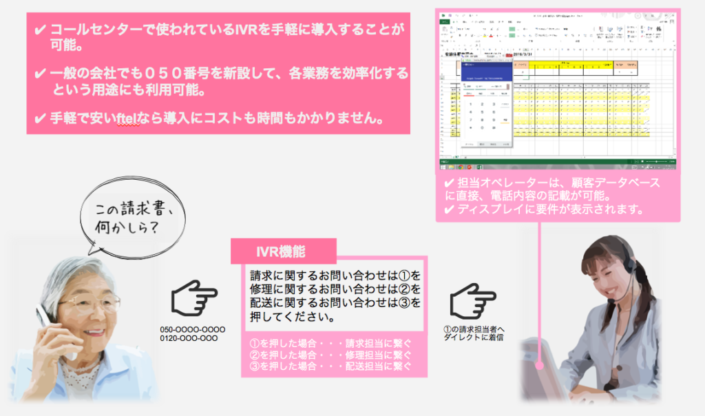 ftelは電話業務を効率化するコールセンターシステムです。本来ハードウェアであるコールセンターのシステムをクラウド上で構成。