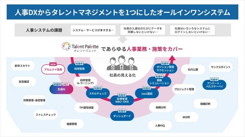 引用元:タレントパレット「グループシナジー創出を実現するための人財情報インフラとしてタレントパレットを導入」