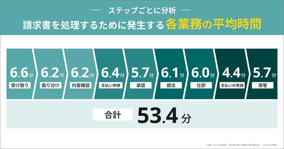 Sansan株式会社の調査によると、1枚の請求書処理には平均53分以上かかり、企業は月平均96枚(約84時間相当)の請求書を処理しています。