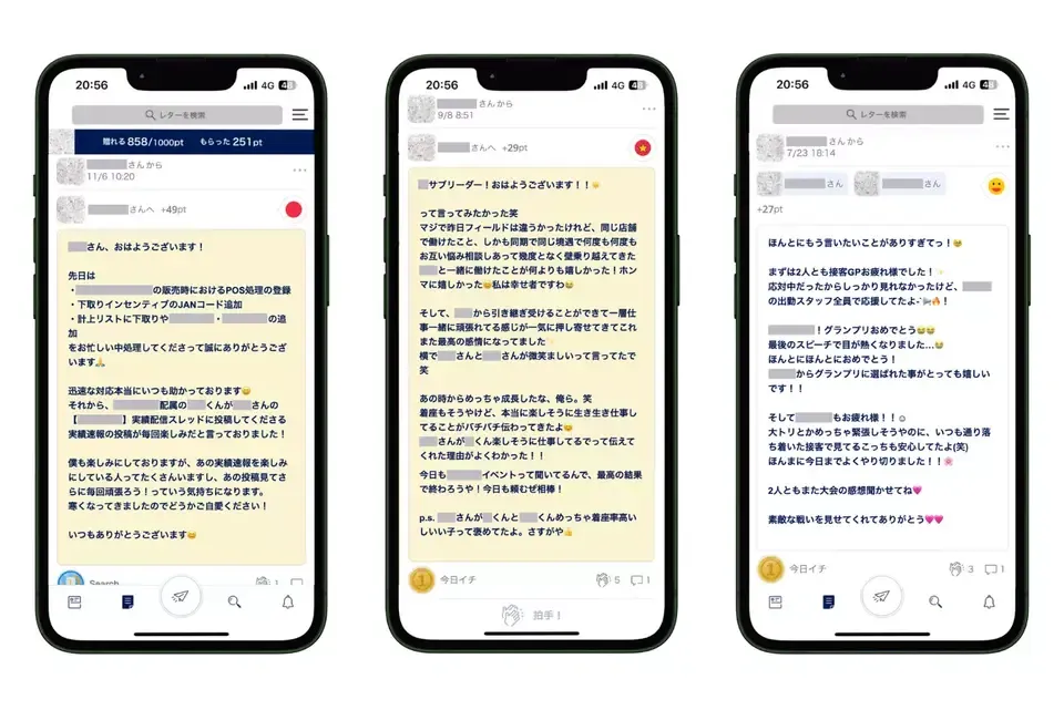 当社はリモートワークのメンバーが多く、北は北海道から南は鹿児島まで従業員がいます。その方たちのやりとりはオンラインがメインとなるわけですが、ほかの社内SNSはどうしても業務上のコミュニケーションに偏りがちです。社内SNSでも感謝や称賛のメッセージは飛び交いますが、クローズドな場なので当人同士のやりとりで完結する側面もあります。
