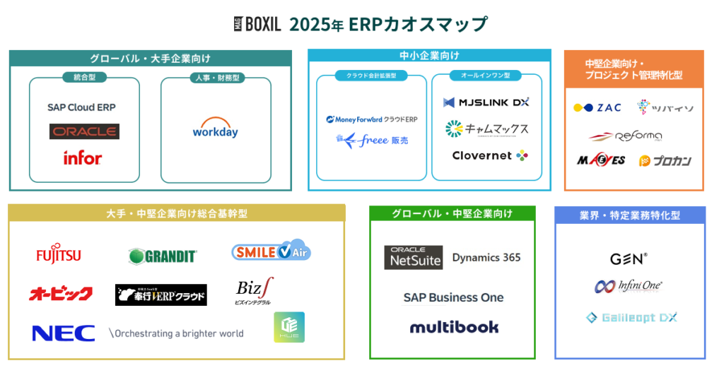 グローバルに複数拠点を展開し、複雑なサプライチェーンや多角的な事業を抱える企業に向いたカテゴリです。各社バラバラだったシステムを共通基盤にまとめ、経営データをリアルタイムに統合したい場合に選ばれやすいでしょう。