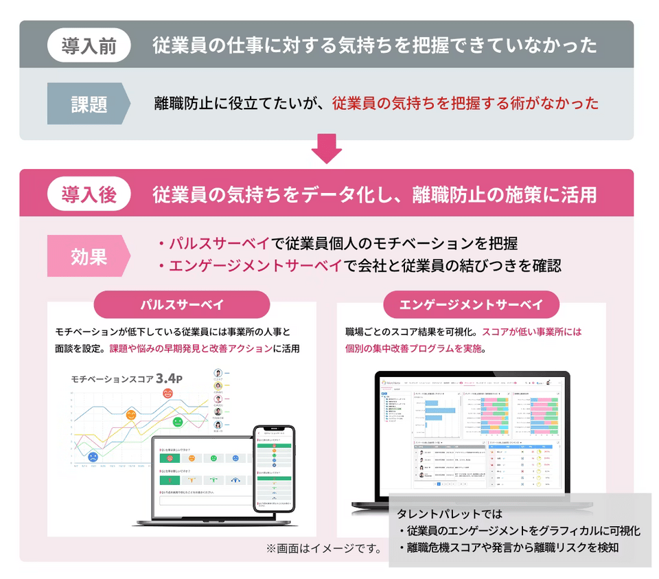 パルスサーベイの導入により、直属の上司や本社が、従業員の仕事に対する気持ちを把握できるようになり、非常に貴重な情報が集まってきていると感じています。