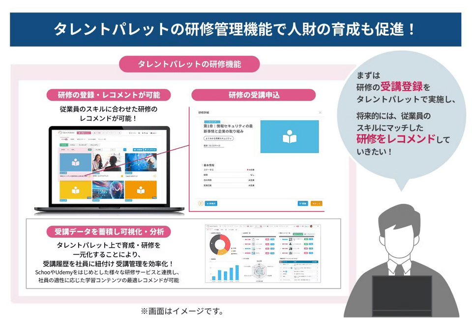人事のトレンドや会社のグローバル展開という方向性を考えると、将来的には、個人や組織に求められるスキル、役職に求められるスキルを明らかにする取り組みが必要になってくると思います。従業員に求められるスキルと、個人が持っているスキルを考慮して、どのような研修や講習を受けさせるべきかを、研修管理機能で導き出せるようになれば理想的だと考えています。