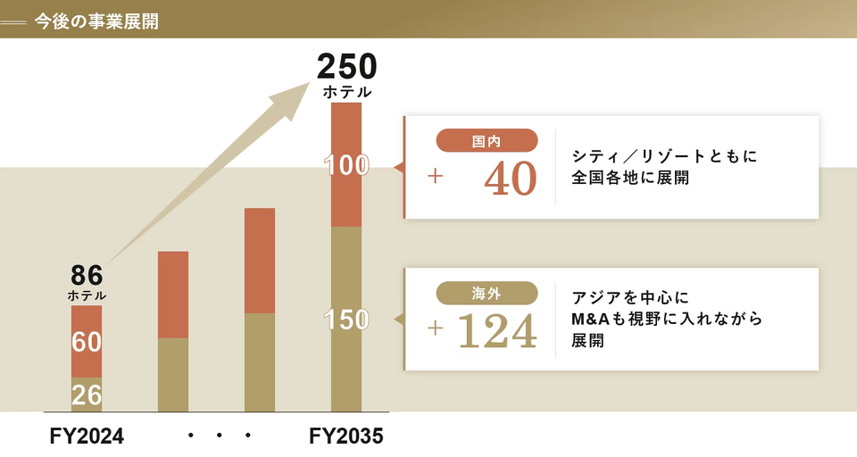 現在は国内外に86のホテルを展開していますが(2025年2月時点)、2035年までに250規模に拡大することを目指しています。
