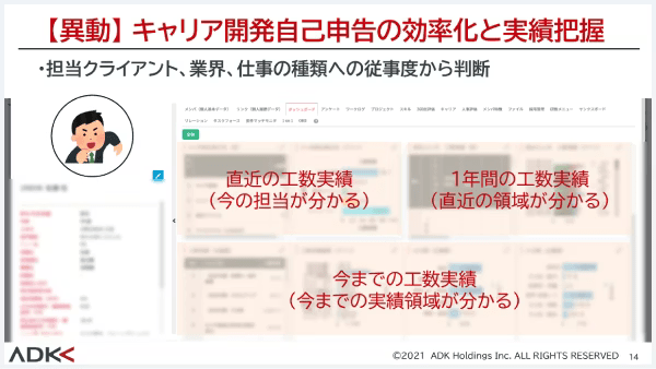 引用元:[タレントパレット「タレントパレットで実現した「ADK流人事データ活用」 ~定量・定性両面でのPDCA~」](タレントパレットで実現した「ADK流人事データ活用」 ~定量・定性両面でのPDCA~)