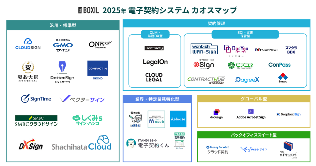 【2025年最新】電子契約システムのカオスマップ!CLMや不動産・建設特化も