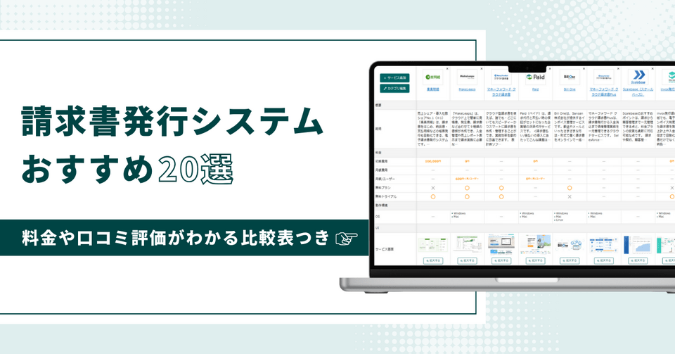 主要な請求書発行システムの『料金』や『機能』をひと目で比べられる比較表をご用意しました。