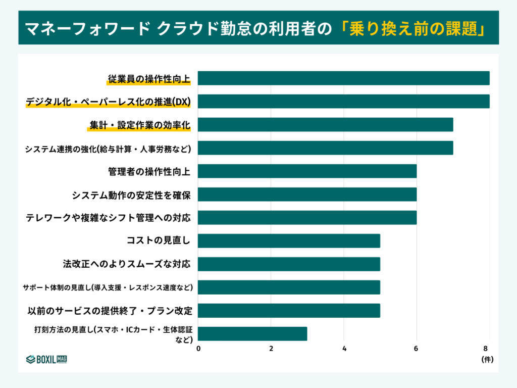 マネーフォワード クラウド勤怠の利用者に多かった「乗り換え前の課題」