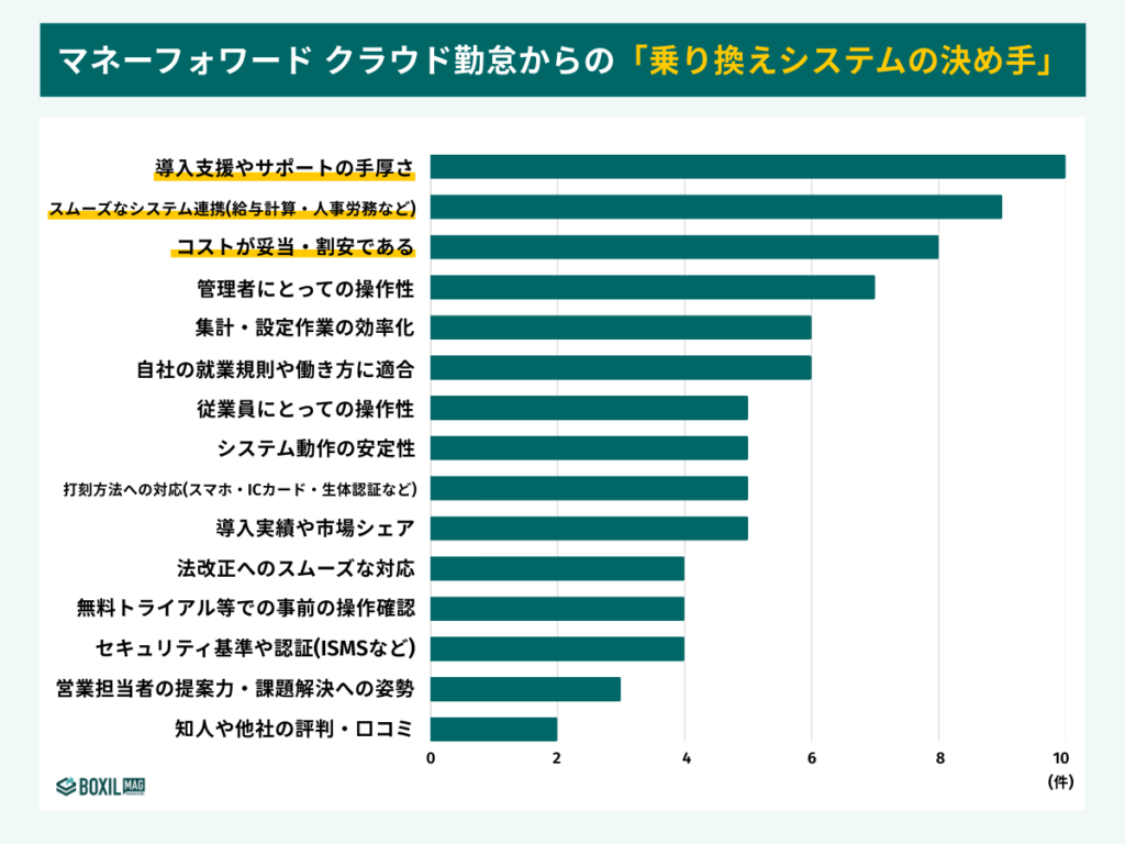 マネーフォワード クラウド勤怠の利用者に多かった「乗り換えの決め手」