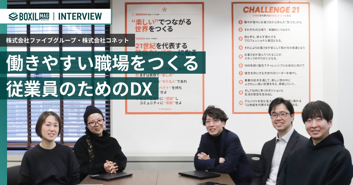 人手不足が深刻化する中、従業員エンゲージメントを高く維持し、さらに採用実績にもつながっている背景にある取り組みとは? conettoを提供する株式会社コネット(以下、コネット)と、“conettoをもっとも活用している”ユーザーであるファイブグループの担当者に、conettoの運用で実現するエンゲージメント向上施策について伺いました。