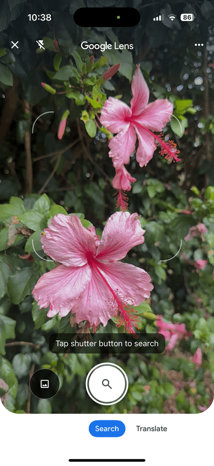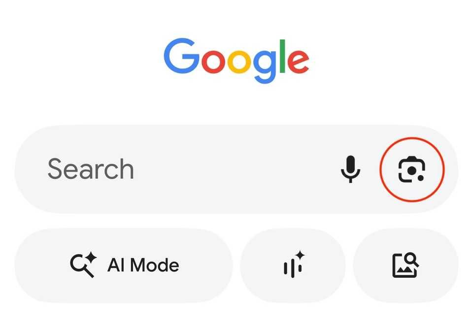 - 画面上部の検索バー右側にある カメラ(レンズ)アイコンをタップ