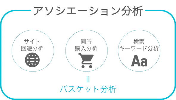 アソシエーション分析とは、データ間の相関を割り出す分析ですが、特に同時購入されている商品の相関関係の分析をバスケット分析といいます。