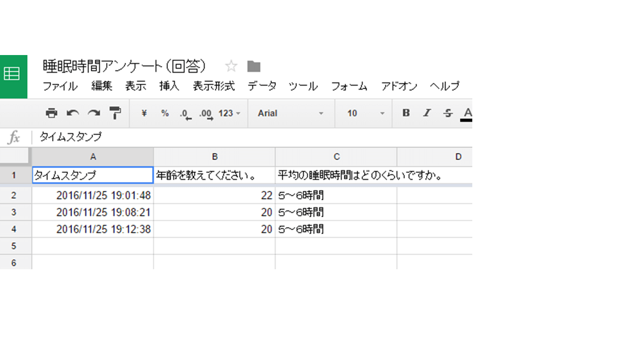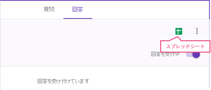 「回答」を押した後、右上のスプレッドシートのアイコンをクリックします。表形式で回答結果を確認できます。