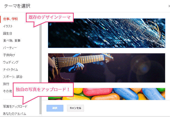 カテゴリー別にさまざまなデザインテーマが揃っています。利用シーンに合わせて使ってみましょう。