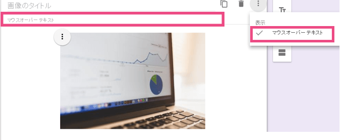 アンケートには画像挿入ができます。画像は、PC内の画像以外にGoogleドライブからも選択できます。