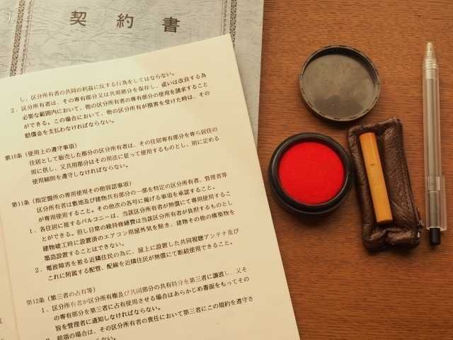 契印(けいいん)とは、不動産の賃貸契約書でおなじみの、各ページが綴じられているすべての部分に押される印鑑です。契印は割印と同様に印影が書類で分割されるため、一般では割印と呼ばれることもありますが、厳密には割印と区別されています。