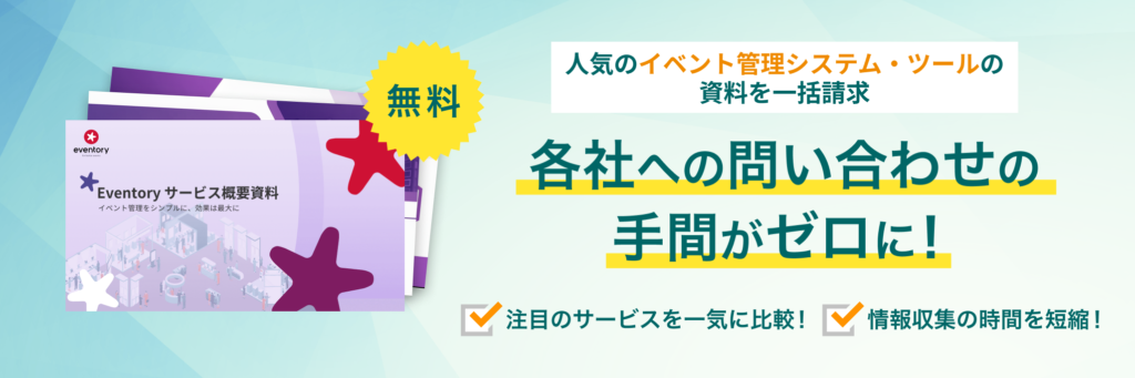 【特典比較表つき】イベント管理システム・ツール各社の資料を一括でダウンロードする(無料)