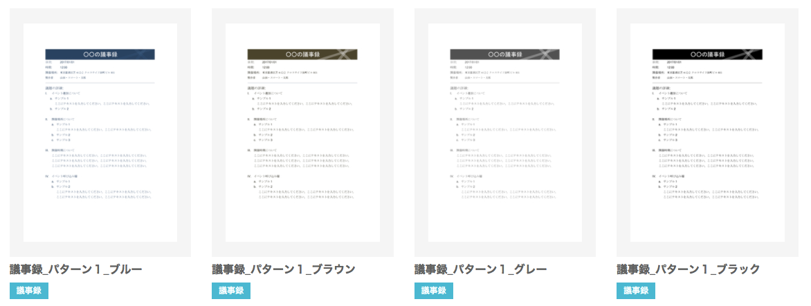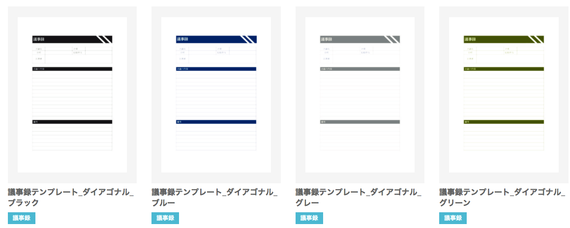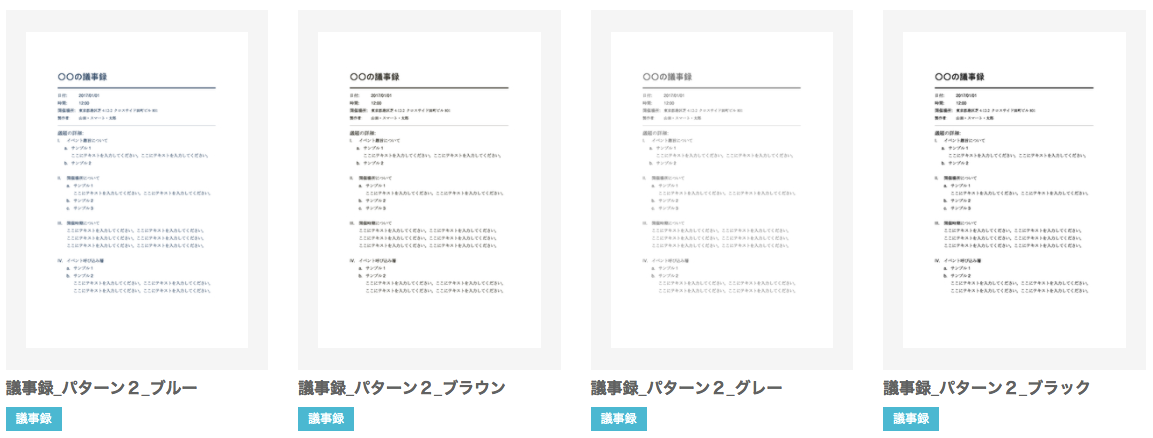4色×4種類のテンプレートの中からフォーマットとデザインを選んで、お好みのテンプレートをダウンロードしてください。