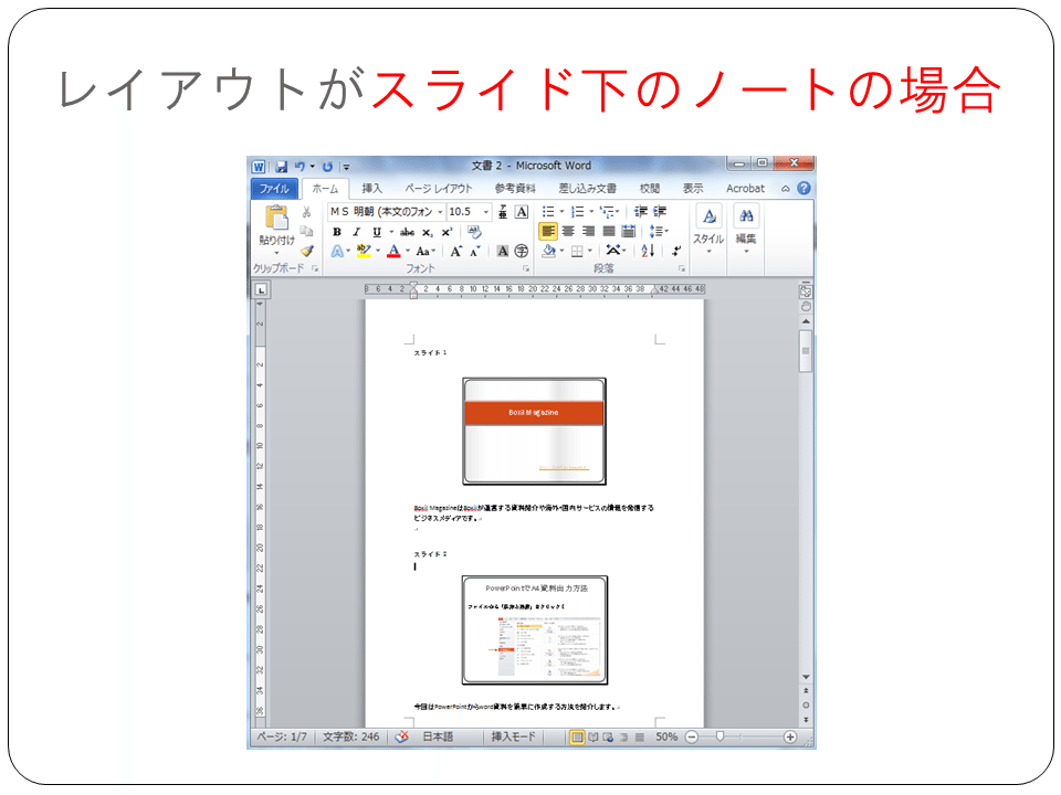 PowerPointのスライドとノートは、Word文書に変換できます。変換することにより次のようなメリットが挙げられます。