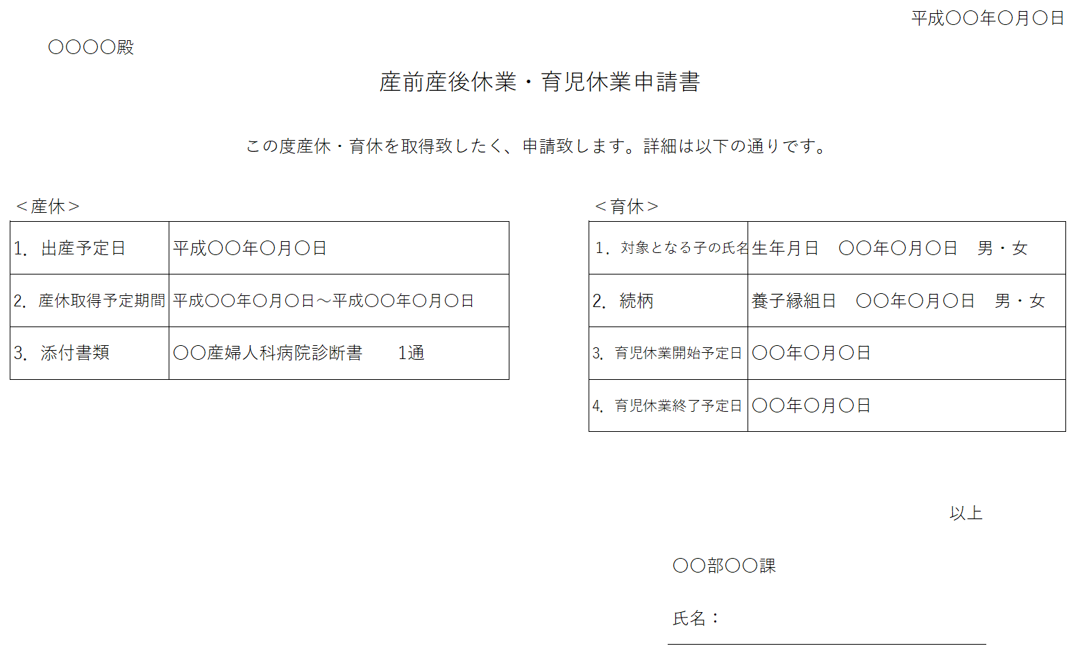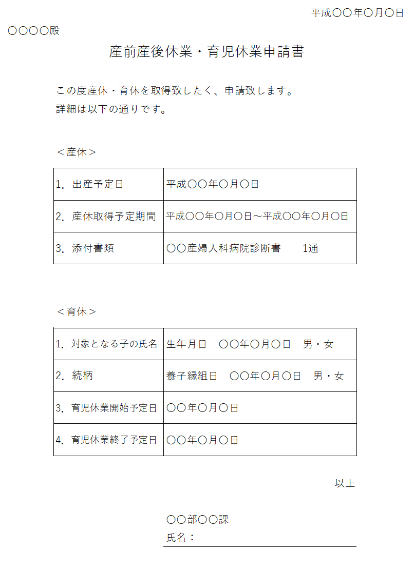 産休・育児休業申請書テンプレート【産休・育児休業申請書】