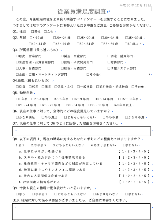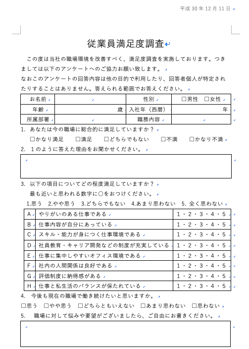 【無料】ワードで使える従業員満足度テンプレート