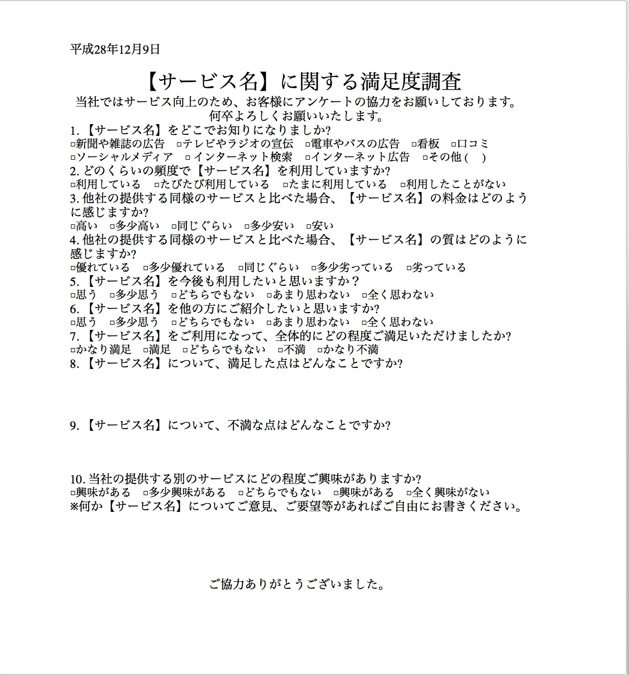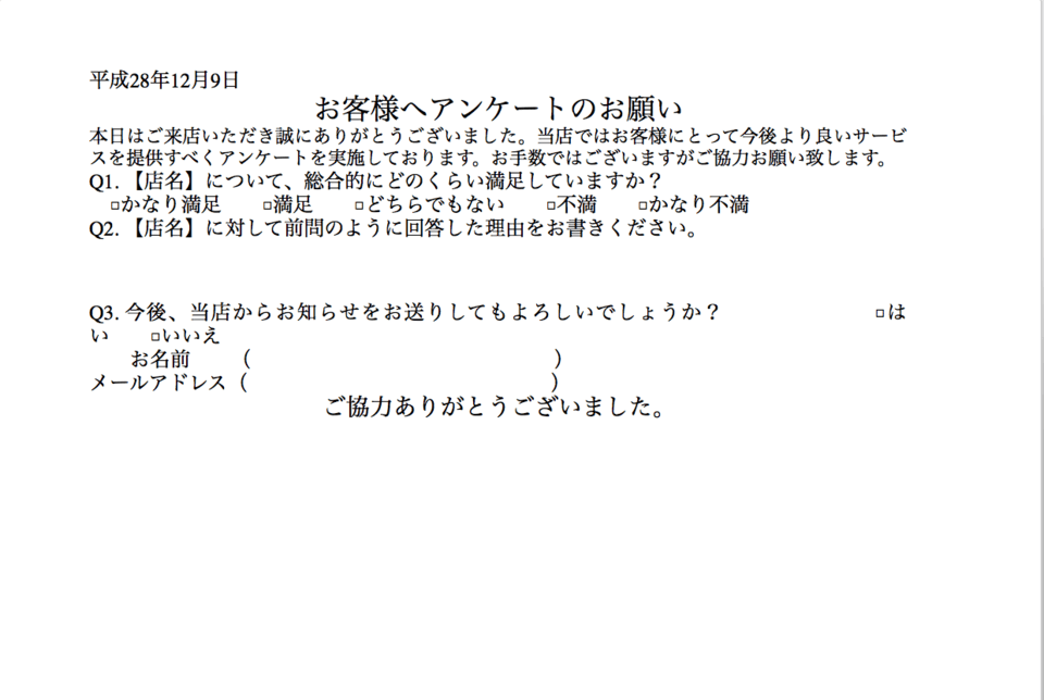 【無料】ワードで使える顧客満足度調査アンケートテンプレート