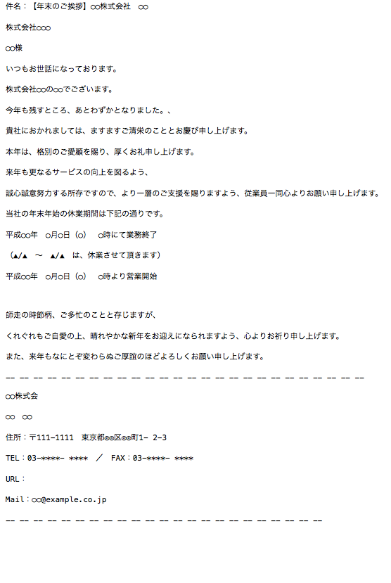次の記事を参考に年末挨拶メールを発行してください。