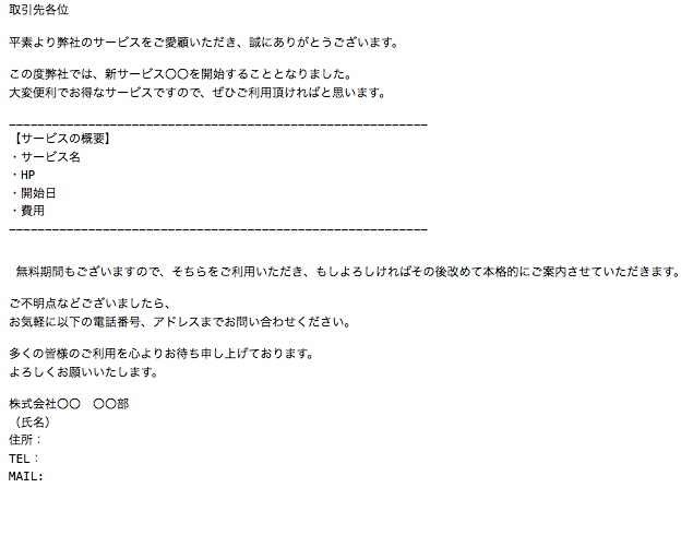 新サービス開始の案内メールが作成できる無料テンプレート!