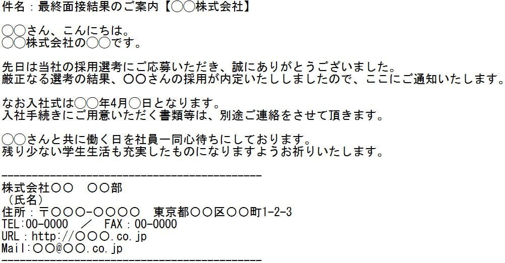 内定案内・採用通知メールの書き方は?ポイント・注意点 | 新卒採用向け無料テンプレート