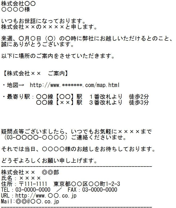 これで待ち合わせ場所のご案内メールの作成は完璧ですね。
