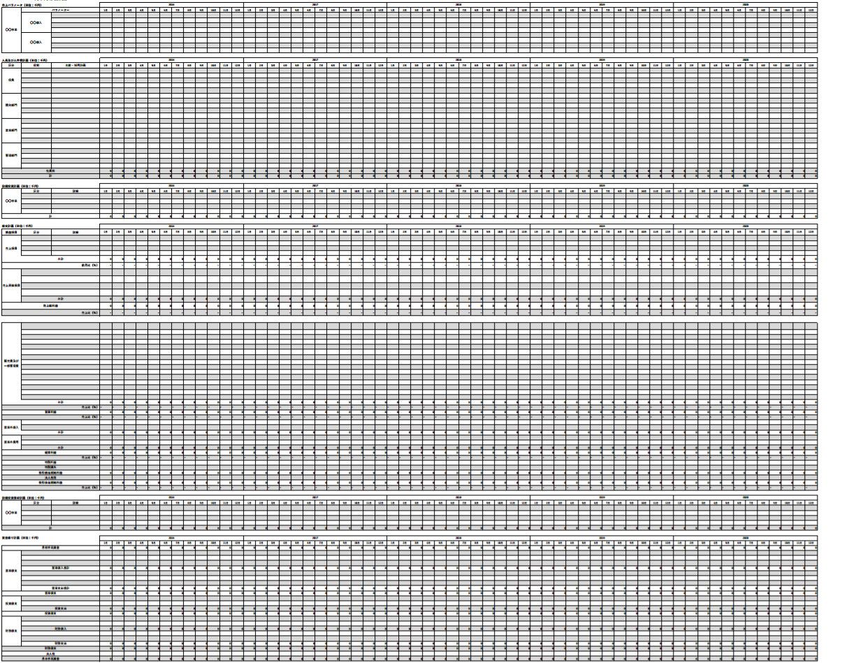 複数事業用収支計画書の無料Excelテンプレート(フォーマット)です。1枚のフォーマットで各種数値の自動計算をします。