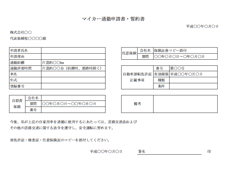 それでもよいという場合に限りマイカー通勤申請書兼誓約書を書くことになります。