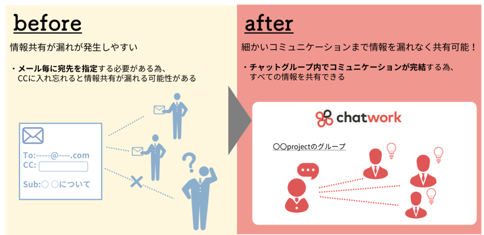 ④情報共有の漏れ→グループでコミュニケーションを行う為情報共有がより確実に!