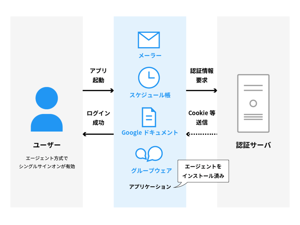 - クライアントのブラウザやネットワーク経路に影響されない(従業員が社外ネットワークから、不特定の移動ホストでアクセスした場合にもSSOが成立)