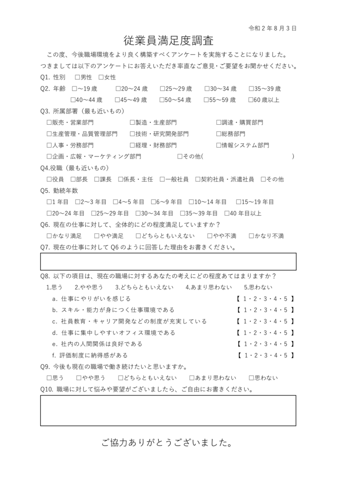従業員満足度アンケートテンプレート