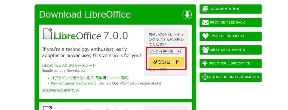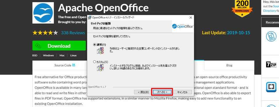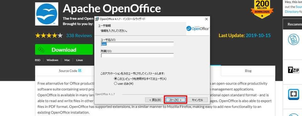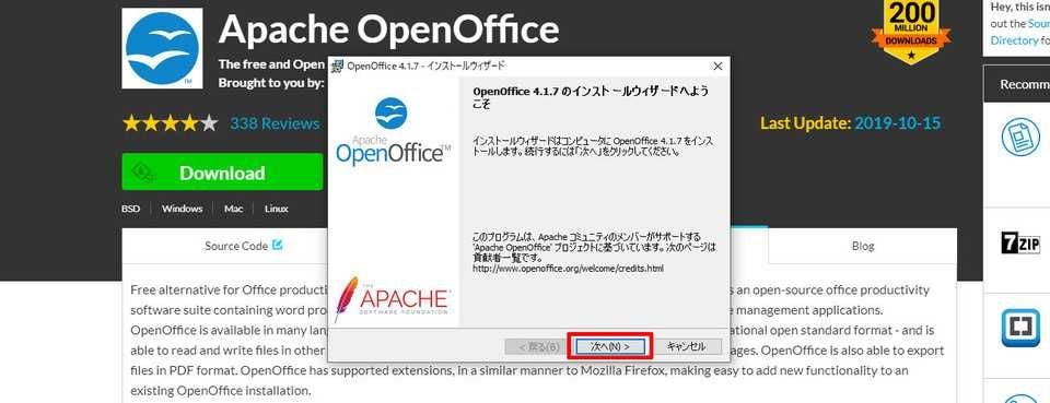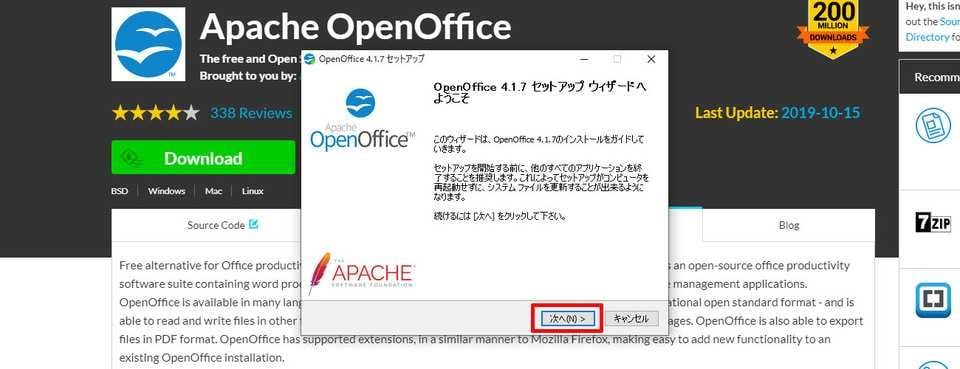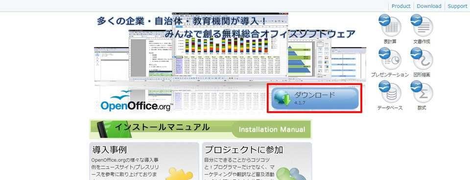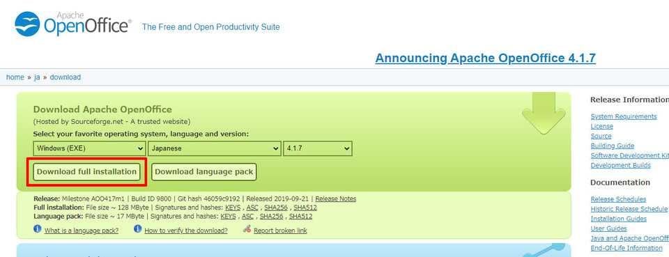 はじめにApache OpenOfficeを 公式サイト からダウンロードします。