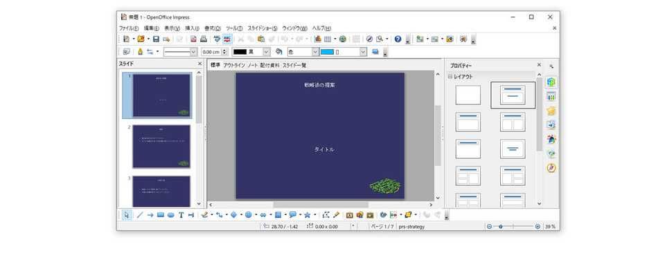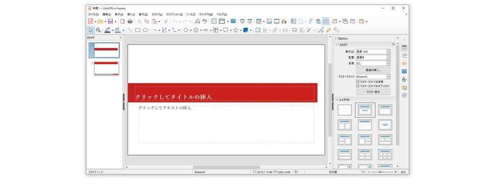 - Impress:PowerPointに類似したプレゼンテーションソフトです。アニメーションの表現も豊富。