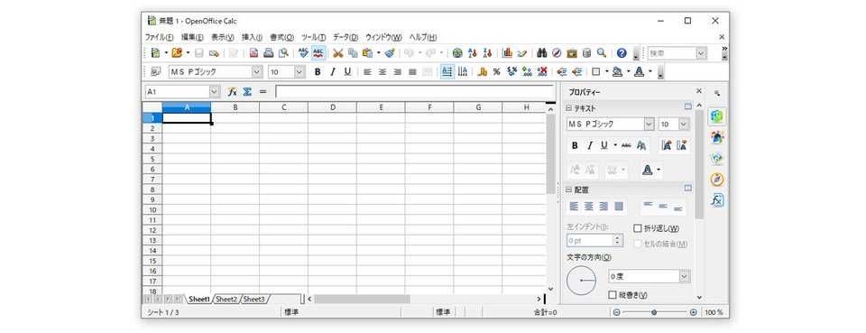 - Calc:表計算ソフトです。Microsoft Office Excelと操作性はほとんど変わりません。