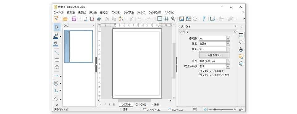 - Draw:図形描画ソフトです。Microsoft Publisherに相当し、簡易CADツールとしても使えます。