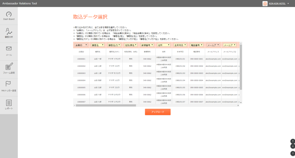 1.API連動か、CSVでのアップロードで顧客データを登録できます。