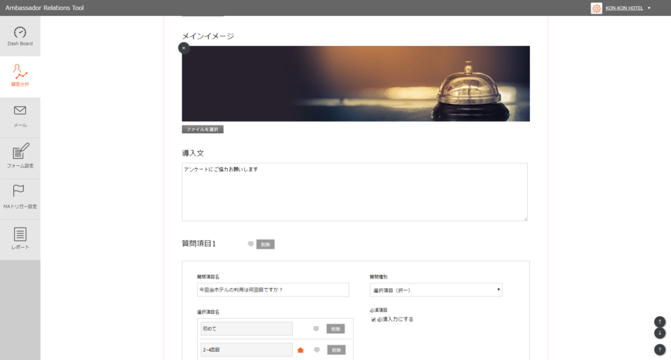 顧客分析・メール配信・Webアンケート・MA(マーケティングオートメーション)などの必要な機能を1つの管理画面から利用できルのが特長です。