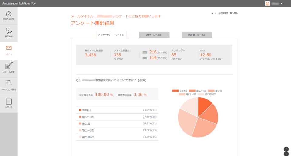 アンバサダーは、全員がファンなので、口コミはもとより、アンケートや新商品のキャンペーンなどにも積極的で、 開封・反応率が格段に高いのが特長です。