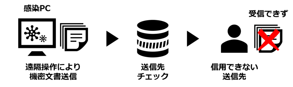 フィルタリングソフトはセキュリティの面でも力を発揮します。たとえば、社内のPCが遠隔操作型のマルウェアに感染した場合、遠隔操作により機密文書が流出する危険性があります。しかし、フィルタリングソフトを利用していれば、信頼されていない送信先はブロックされ、情報漏えいを防げます。