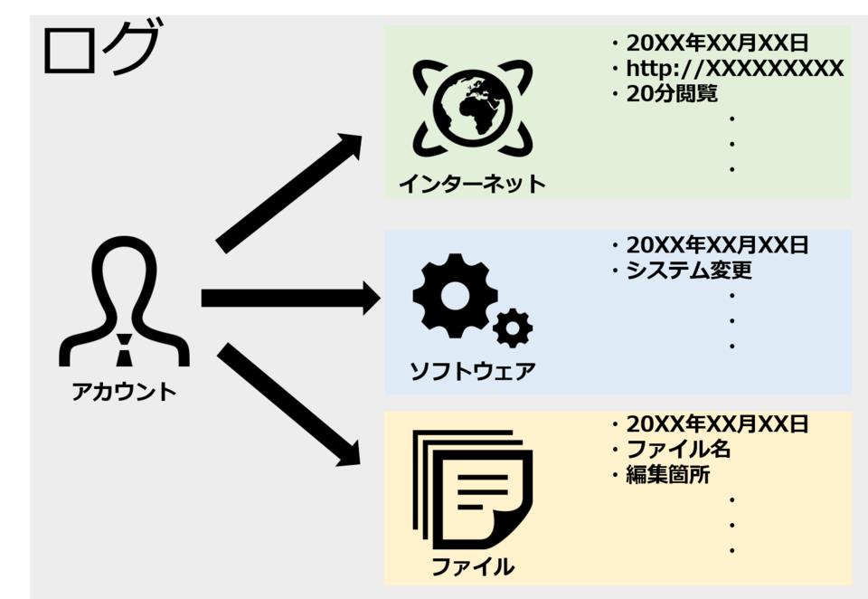 ログ監視を説明する前に、「ログ」というものの定義に触れておきます。ログというのは、パソコンの使用履歴のことをいいます。どんなソフトを開いたか、ウェブ上でどのサイトのどのページをどれぐらい見たか、という記録がログと呼ばれています。