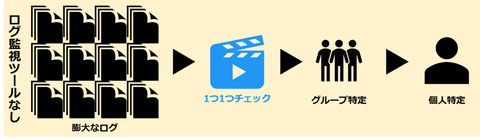 ログの監視にはログ監視ツールの活用が欠かせません。問題が起こった時に、ログ監視ツールがないと個人を特定するのに膨大な時間がかかります。