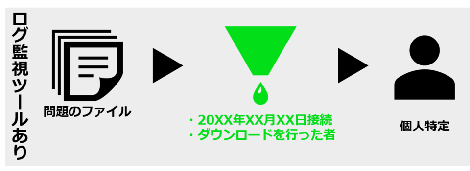 ログ監視を行うことで、従業員がそれぞれのパソコンで何をしていたのか一目瞭然になります。内部からの情報漏えいが起こった場合に、個人を特定するのが容易になりますし、情報漏えい発生の抑止力にもなります。