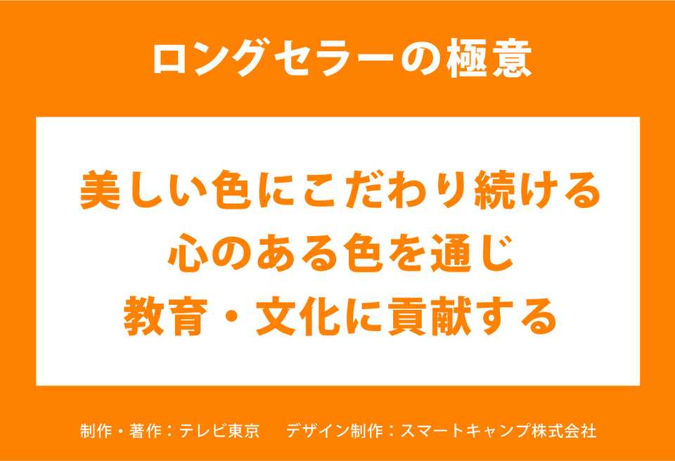 そのロングセラーの極意を心のある色を通じて教育・文化に貢献することだという。