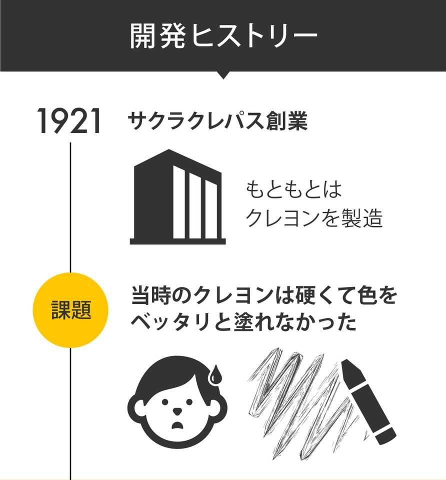 今回は、90年以上のロングセラーで、年間2000万本以上を生産する「サクラクレパス」の製造工程や開発ヒストリー、ロングセラーの秘密などをインフォグラフィックで図解します。