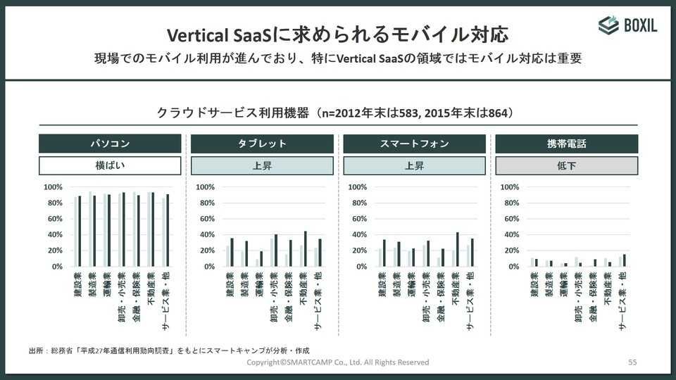 グローバルでも国内でも、やはり業界特化型というよりは業界を問わない課題解決型のSaaSが中心で、業界特化型の場合はマーケティング手法が大きく異なってきます。課題解決型の場合は中小企業に面でアプローチしていくイメージですが、業界特化型の場合はその業界ならではの業務をしっかり押さえながらアプローチしていくことが重要です。